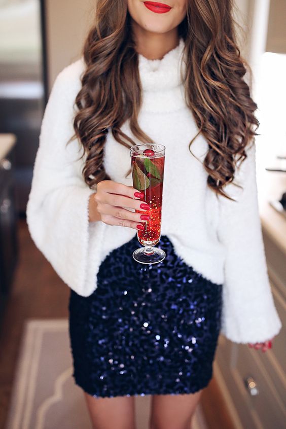 Για έναν casual chic αλλά και παράλληλα γιορτινό συνδυασμό, φόρεσε μία εντυπωσιακή φούστα ή ένα glam παντελόνι με καμπάνα και συνδύασέ τη/το με ένα φαρδύ πουλόβερ.